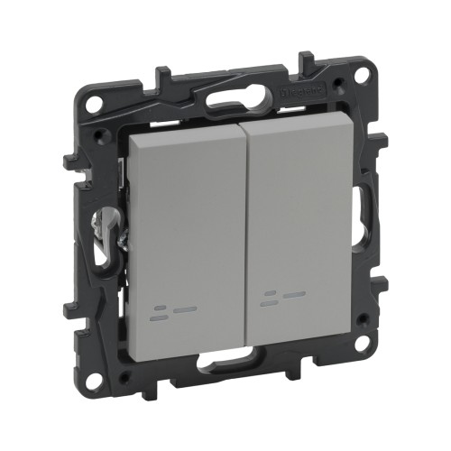 Выключатель двухклавишный, Legrand Niloe Step, 863315, 10А с подстветкой авт.кл. Алюминий