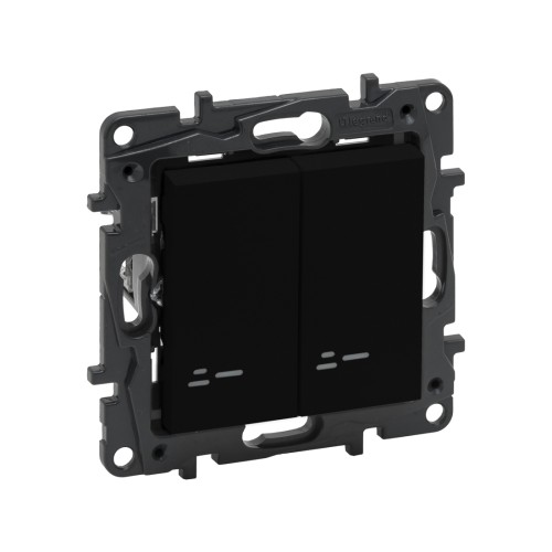 Выключатель двухклавишный, Legrand Niloe Step, 863115, 10А с подстветкой авт.кл. Чёрный